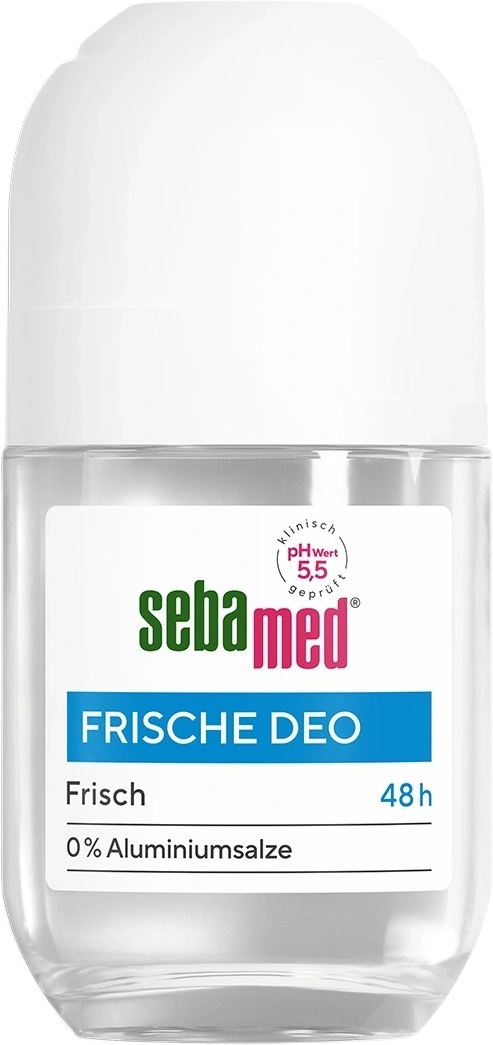Sebamed Fresh Deo Roll-On ilman alumiinisuoloja on ihanteellinen herkille kainaloille ja pitää kehon hajun loitolla pitkään. PH-arvo 5,5 tukee hyvin toimivaa ihonsuojaa ja edistää raikasta tunnetta kainaloiden alla