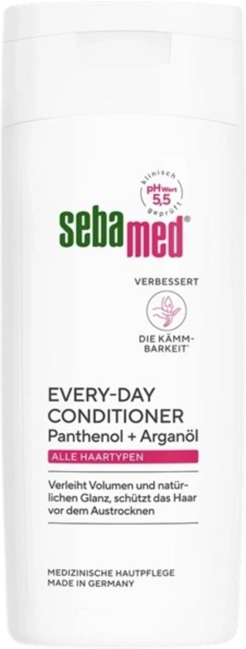 Sebamedin hoitoaine hoitaa normaaleja ja kuivia hiuksia sekä herkkää hiuspohjaa pantenolin ja arganöljyn avulla. PH-arvo 5,5 tukee ihon luonnollista suojakerrosta ja takaa hellävaraisen ja hellävaraisen puhdistuksen.