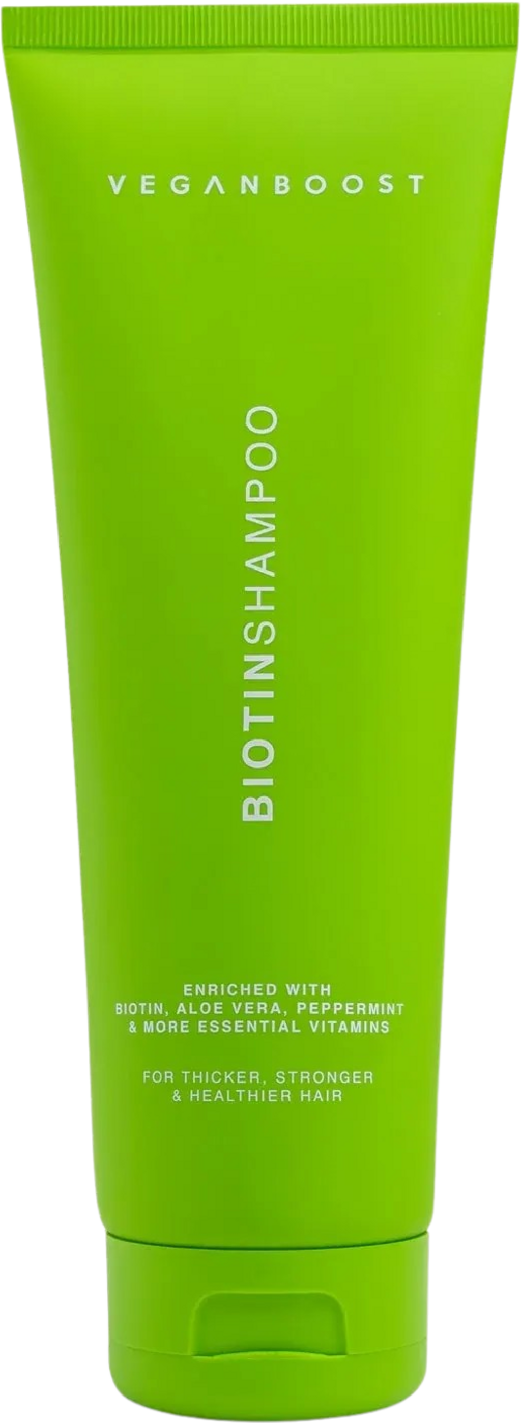 Veganboostin biotiinishampoo on vegaaninen shampoo, joka puhdistaa ja virkistää hiuksesi täydellisesti. Sen koostumus on täysin vapaa sulfaatista ja parabeeneista. Shampoo on rikastettu muun muassa biotiinilla, aloe veralla, rosmariinilla, piparmintulla, kamomillalla, kurkumalla ja kehäkukalla. Sitä voidaan käyttää päivittäin.