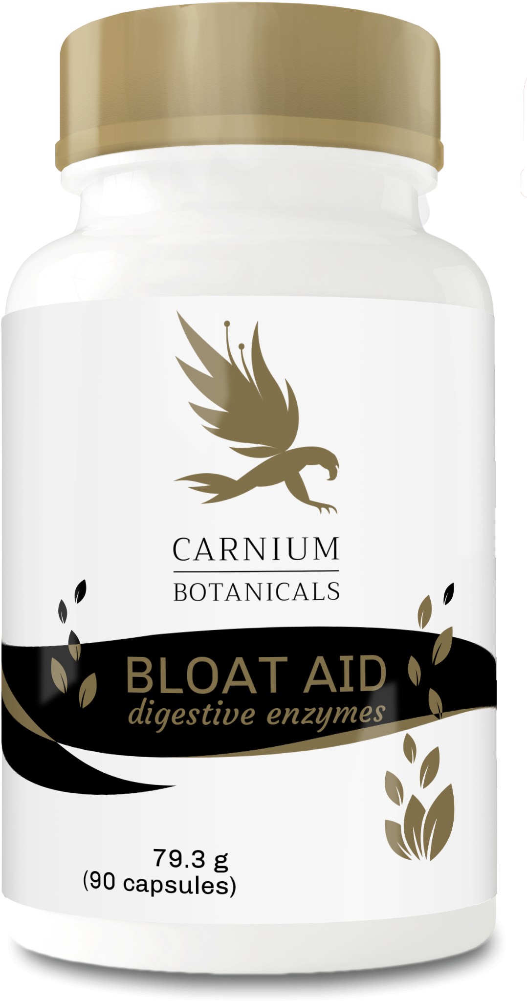 Carnium Botanicals -tuotemerkin Bloat Aid -kapselit sisältävät arvokkaan yhdistelmän ruoansulatusentsyymejä, fenkolin siemeniä, vaahtokarkin juuriuutetta, melissauutetta, kamomillankukkauutetta ja muuta. Tämä koostumus sopii erinomaisesti myös vegaanista elämäntapaa tukemaan.