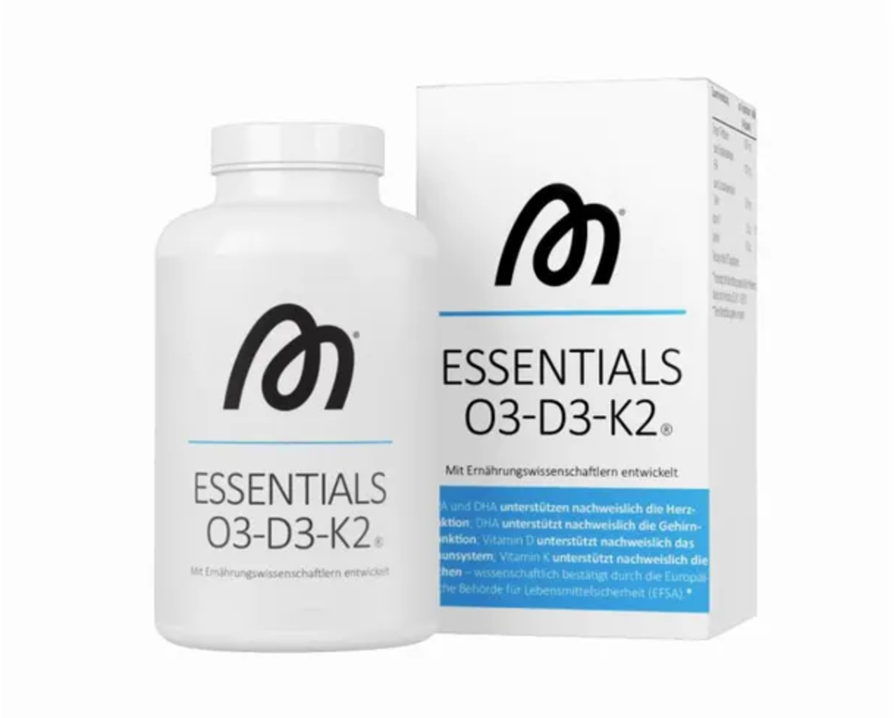 More Nutritionin Essentials O3-D3-K2 on kätevä päivittäiseen käyttöön tarkoitettu kapseli. Se sisältää arvokkaita omega-3-rasvahappoja EPA ja DHA, jotka saadaan kalaöljystä. Päivittäisen 250 mg DHA-saannin täyttyessä tämä voi edistää normaalia näkökykyä ja aivojen normaalia toimintaa.