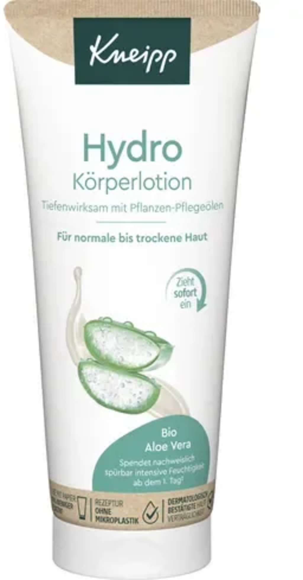 Hemmottele ihoasi aidon Aloe Veran intensiivisellä kosteutuksella. Erityisesti kuiva iho tarvitsee riittävää kosteutusta, joten Kneipp yhdistää Hydro-vartaloemulsiossaan aitoa Aloe Vera -uutetta sheavoin ja kookosöljyn kanssa. Panthenoli täydentää koostumusta.