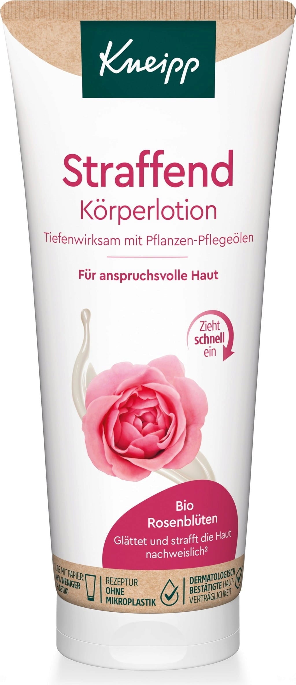 Korkealaatuinen uute luomuruusun terälehdistä sekä öljykompleksi, joka sisältää argan-, manteli- ja jojobaöljyä, tekevät Kneipp®-kiinteyttävästä vartaloemulsiosta erityisen. Pehmeä koostumus hellii vaativaa ihoa kevyesti hoitavilla ominaisuuksilla ja tarjoaa tasapainottavan vaikutuksen. Rikastettu pantenolilla ja E-vitamiinilla. Emulsio imeytyy nopeasti ja jättää jälkeensä miellyttävän ruusuntuoksun.