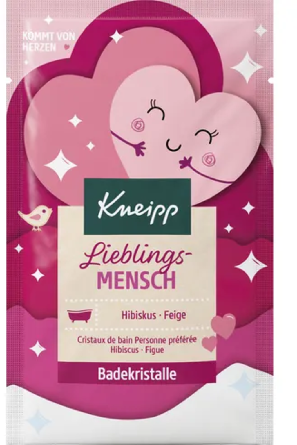 Rakas ihminen -kylpykristallit Kneippilta tuo täyttä hemmottelua kylpyyn. Hedelmäinen ja kukkainen tuoksu leviää kylpyhuoneeseen, kun hibiskus- ja viikunauute, manteliöljy sekä E-vitamiini hemmottelevat ihoa.