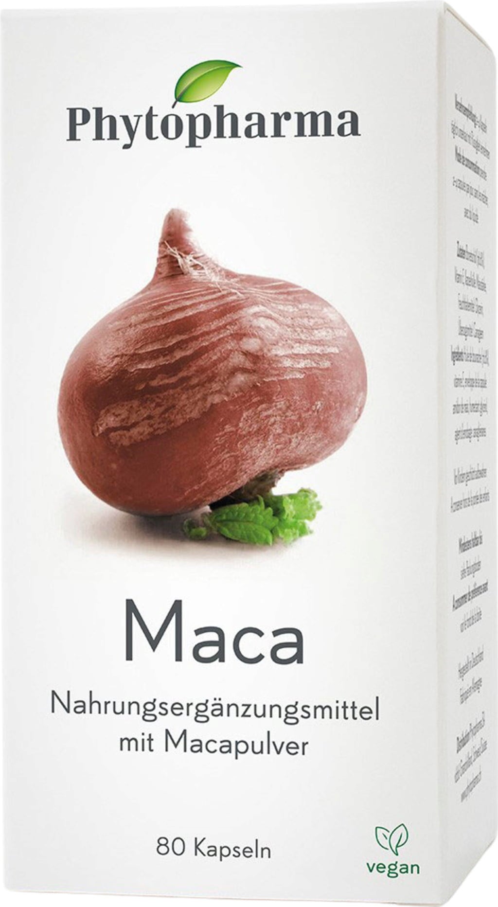 Phytopharma Maca-kapselit sisältävät macajauhetta kolmesta Maca-lajikkeesta (punainen, keltainen ja musta), joista suurin osa on keltaista Macaa. Kapseleiden macajauhe tulee Perusta. Kapselit ovat vegaanisia sekä gluteenittomia ja laktoosittomia.