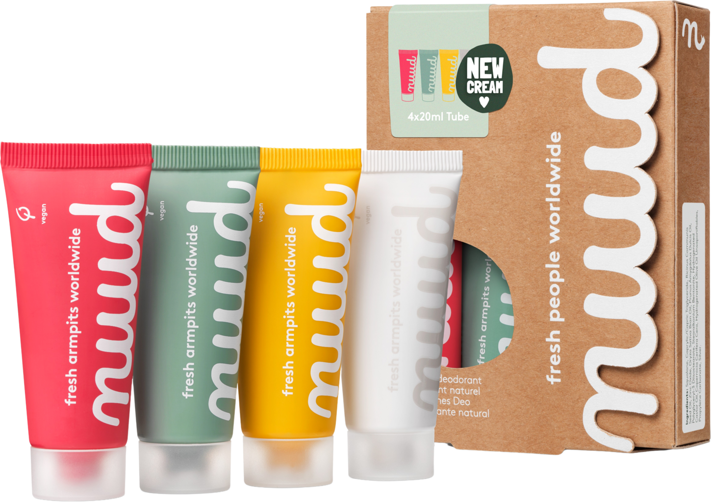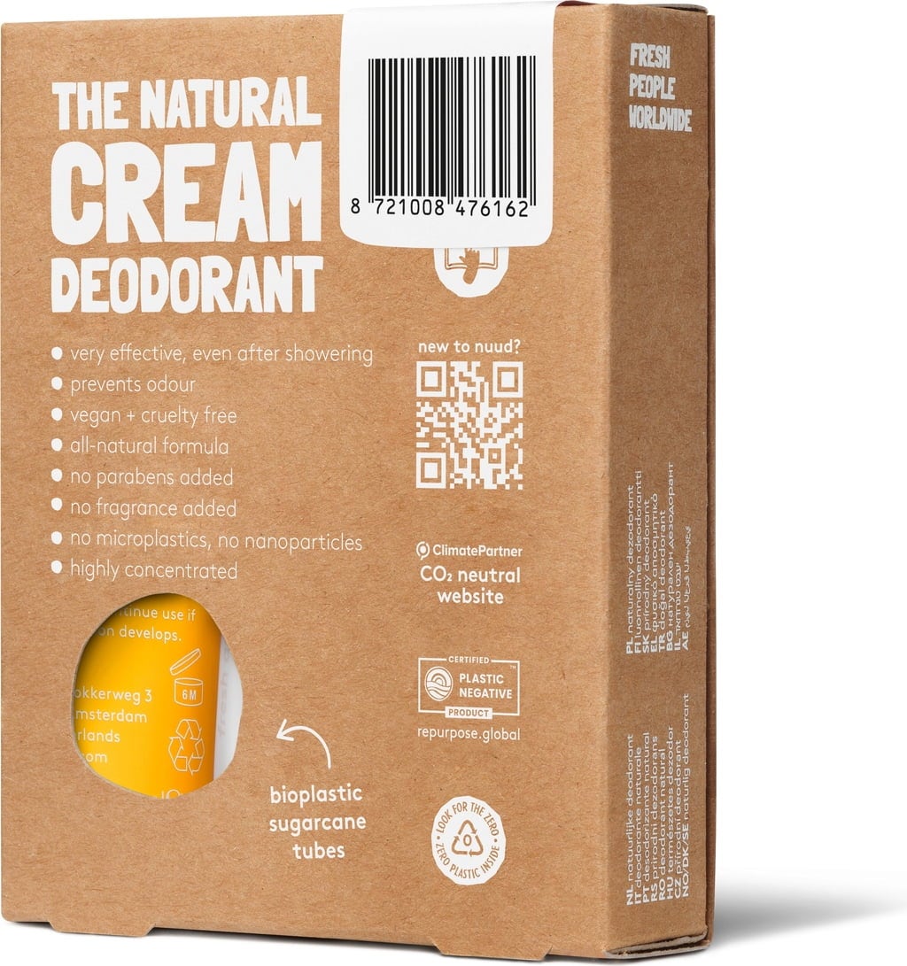 Perhepakkaus sisältää neljä tuubia - täydellinen koko perheelle tai sinulle ja ystävillesi. Jokaisella tuubilla on eri väri, jotta ne on helppo erottaa toisistaan. Cremedeon koostumus on vegaaninen ja sisältää vain muutamia ainesosia, joihin ei ole lisätty hajusteita. Mikhopeptidin ja sinkkioksidin ansiosta se suojaa sinua hellävaraisesti epämiellyttävältä hajulta.
