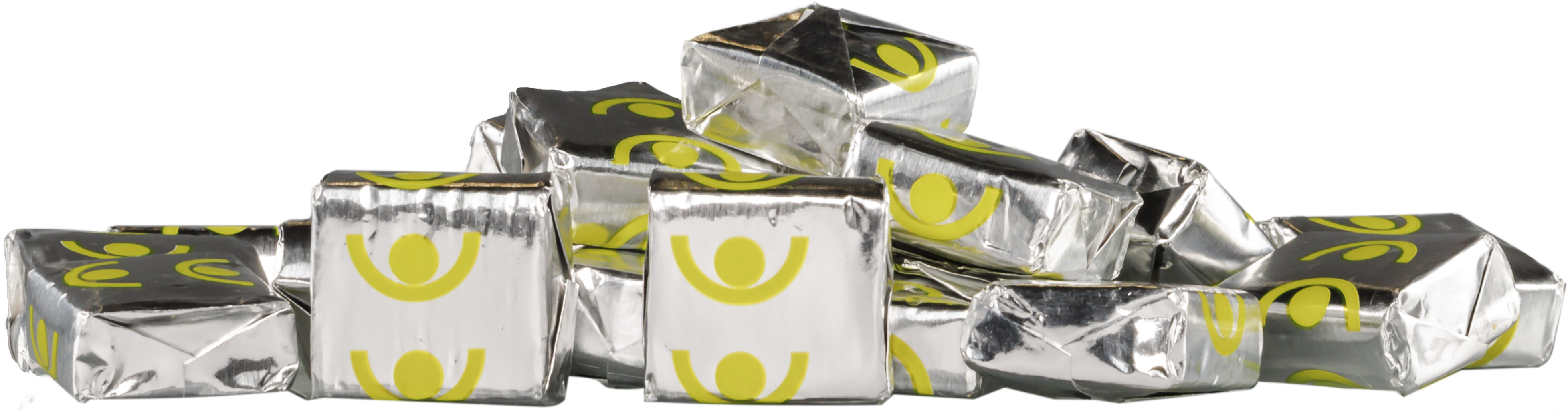 Toffeet on pakattu yksittäin, ja siksi ne sopivat erinomaisesti mukaan matkalle. Ne ovat sopivia myös yli 4-vuotiaille lapsille.