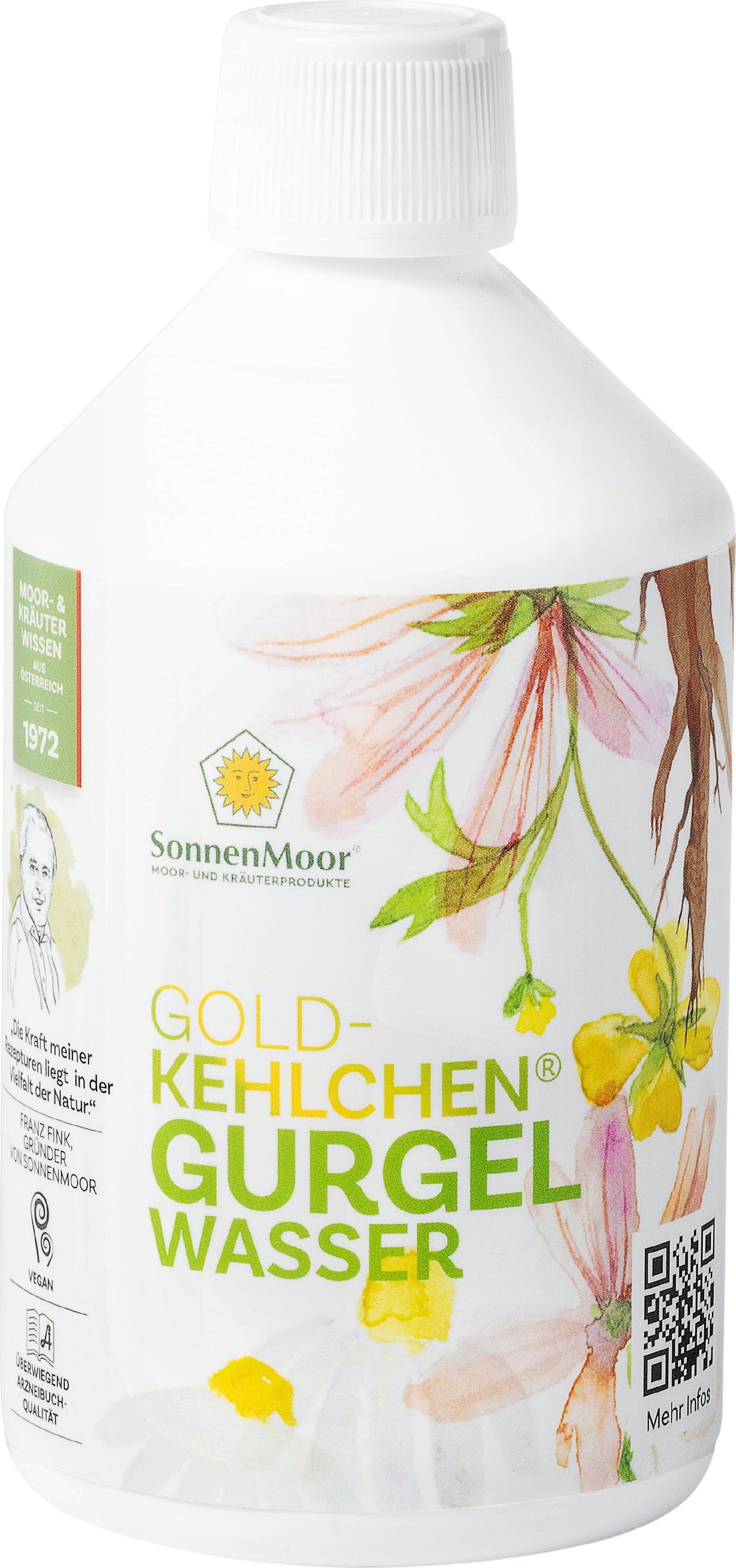 SonnenMoorin kurlausaine on itävaltalainen perinteinen tuote, joka on kehitetty erityisesti suuhygieniaan. Resepti perustuu vesi-uutteeseen, joka sisältää verijuuren, kamomillan, tarhasalkoruusun ja lakritsijuuren. Tämä yhdistelmä puhdistaa suun limakalvoja sekä hoitaa kaulaa ja kurkkua. Tuote hoitaa ikeniä ja suun limakalvoja ja on erinomainen lisä päivittäiseen suunhoitorutiiniin.