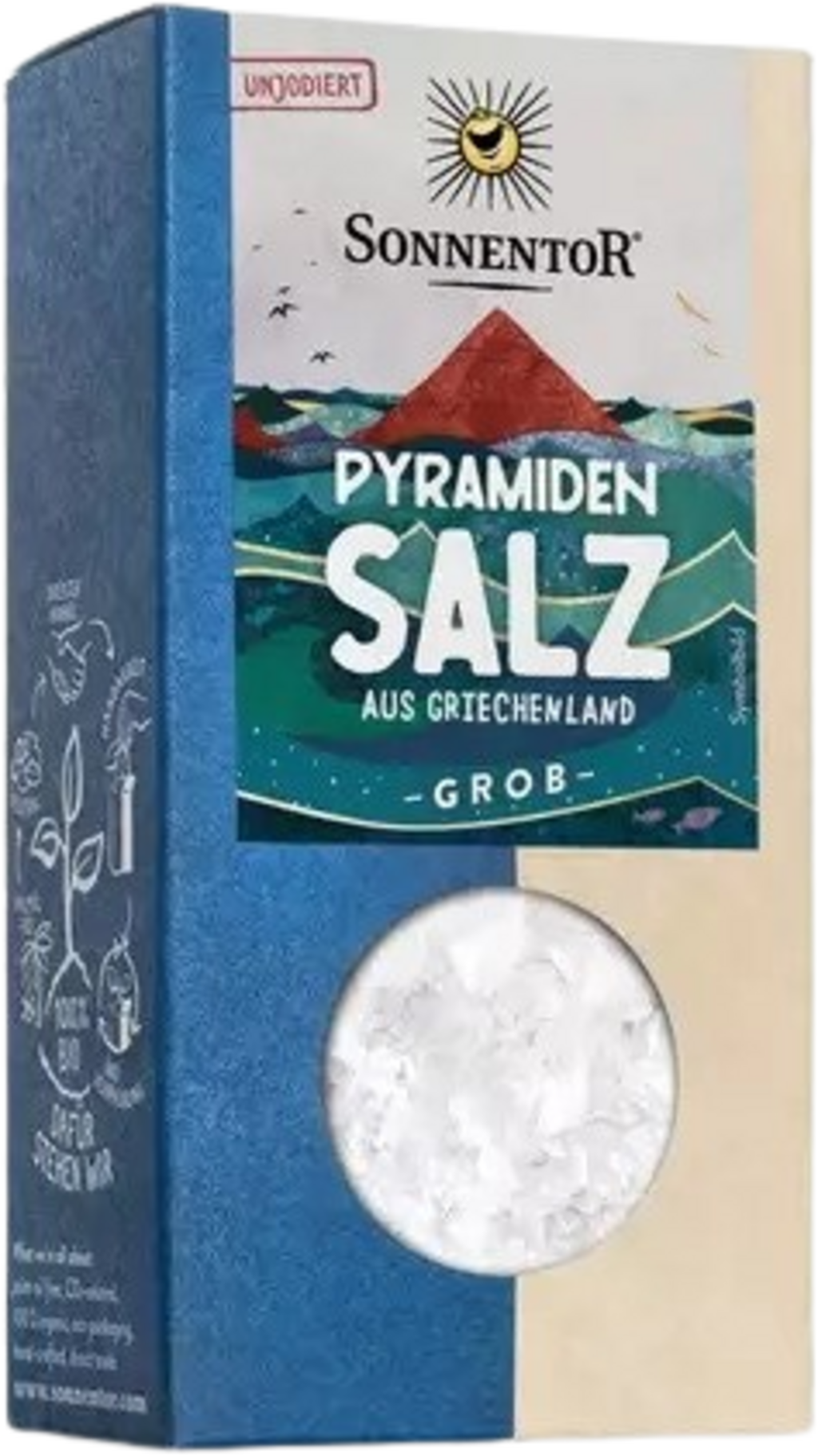 Ei syytä huoleen: Suola ei ole peräisin tunkkaisista pyramideista, vaan se on puhdasta, jodioimatonta merisuolaa Kreikasta! Sen nimi tulee pyramidinmuotoisista hiutaleista. Loistava koostumus antaa ruoka-annoksillesi viimeisen silauksen! Koska suola liukenee nopeasti kielellä, se sopii erinomaisesti pöytämausteeksi - ihanteellinen salaateille, bowleille, leiville ja karamellijälkiruuille. Annostelussa voit noudattaa neuvoa 'Vähemmän on enemmän', sillä suola on voimakkaan makuinen.