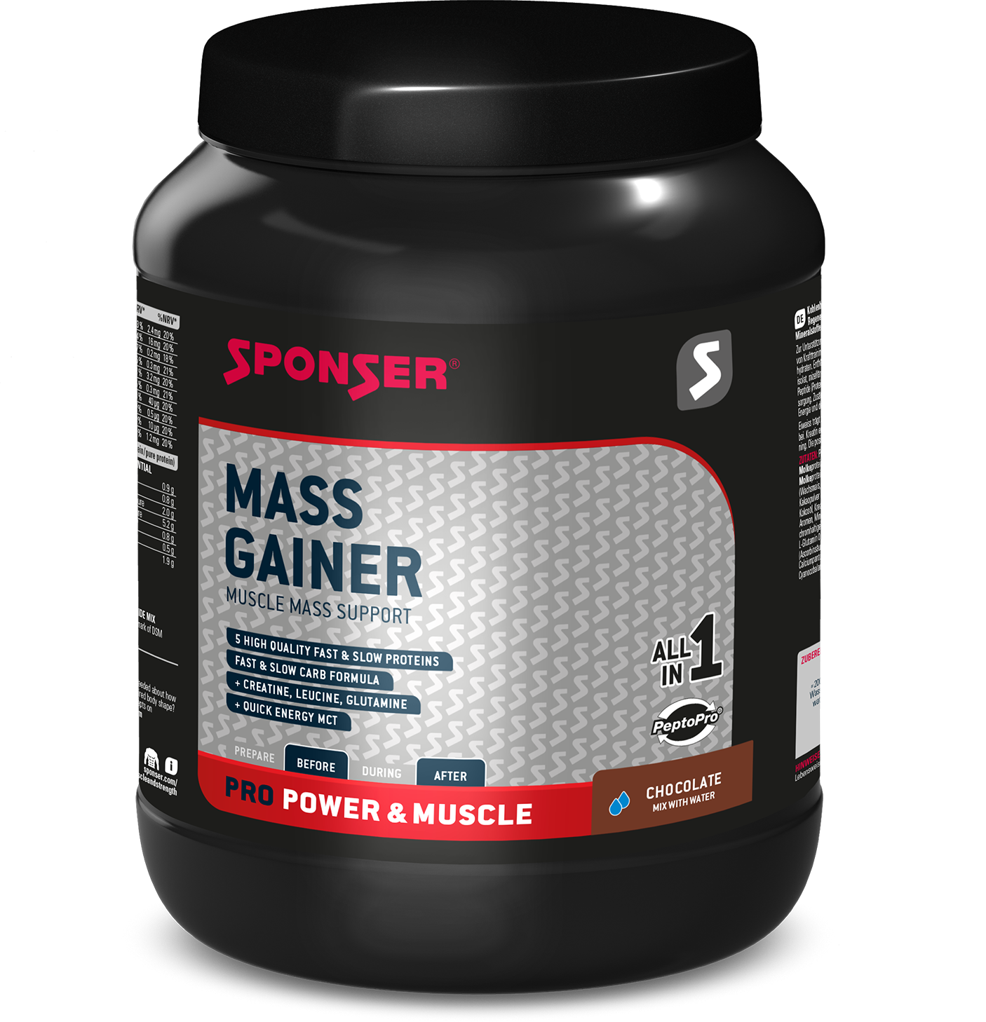 Sponser's Mass Gainer on kehitetty intensiivistä harjoittelua varten ja se koostuu laadukkaasta sekoituksesta erilaisia hiilihydraatti- ja proteiinilähteitä. Maito- ja heraproteiini-isolaatit on valmistettu hellävaraisella cross-flow-suodatuksella ja seosta on täydennetty kaseiinihydrolysaatilla. Näiden tärkeiden ainesosien lisäksi jauheeseen on lisätty myös kreatiinia, erilaisia aminohappoja ja MCT:tä.