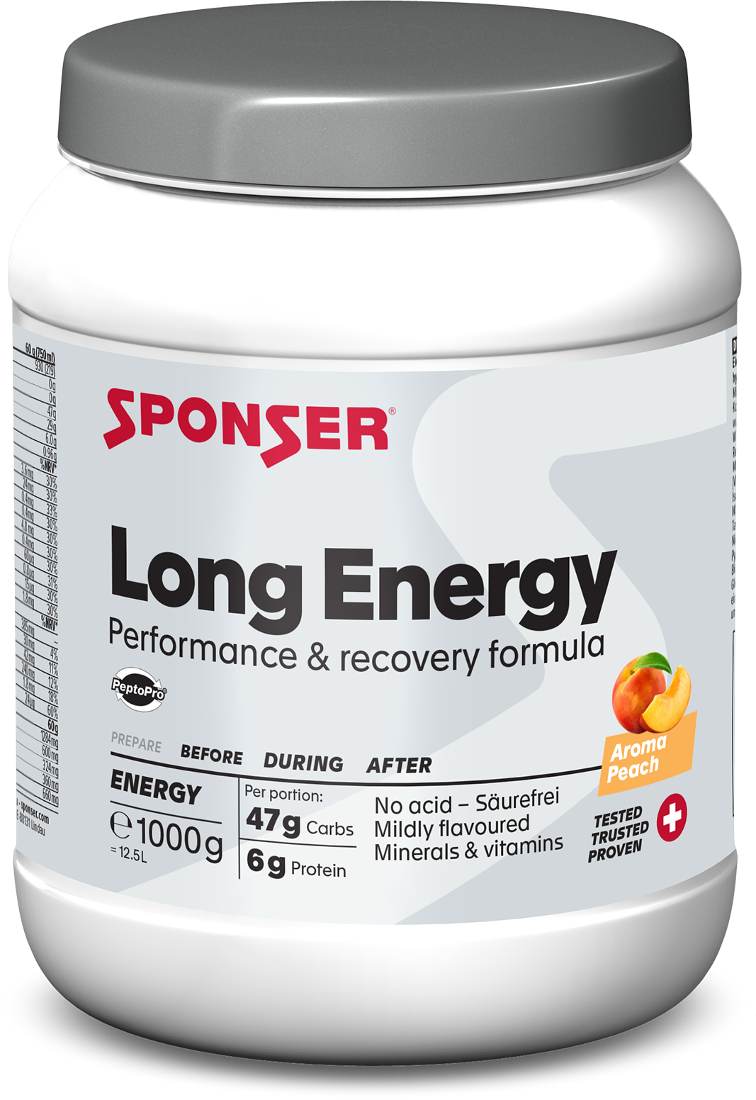 Sponser® Sport Food Pitkäkestoinen energia, Peach (1.000 g)