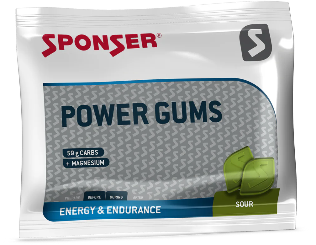 Power Gums -karkit Sponserilta ovat täydellinen vaihtoehto tai lisä energiageeleille. Yhdessä pussissa on 10 karkkia, jotka sisältävät 58 g glukoosia. Maukkaana vaihtoehtona patukoille ja geeleille karkkeja voi nauttia sekä liikunnan aikana että juuri ennen sitä.