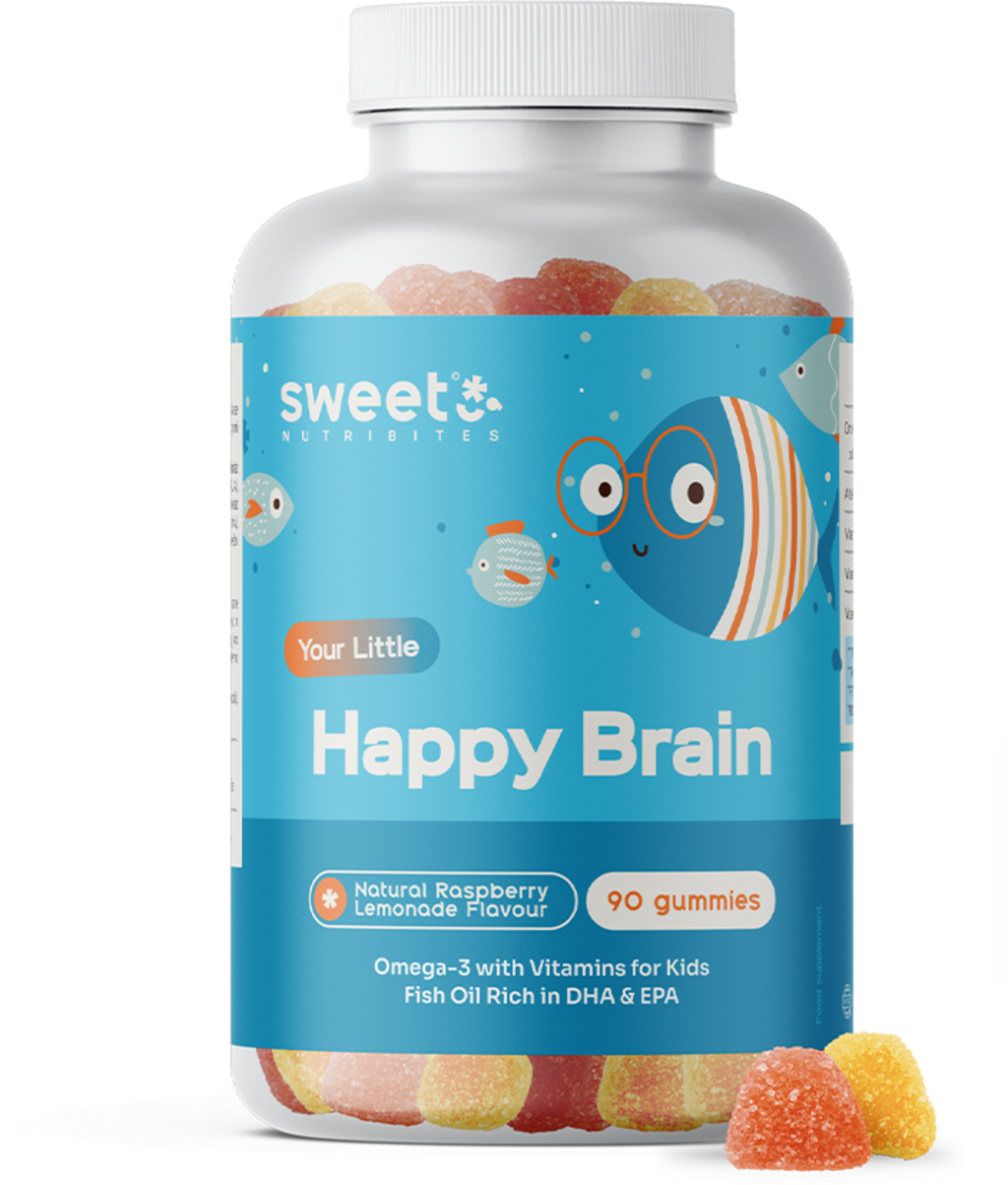 Sweet Nutribitesin Happy Brain -kumitabletit yhdistävät arvokkaat Omega-3-rasvahapot ja valikoiman tärkeitä vitamiineja lapsille innostavassa muodossa. Koska keho ei voi itse valmistaa välttämättömiä rasvoja, nämä pehmeät kumimakeiset tarjoavat vaivattoman ratkaisun arkeen.