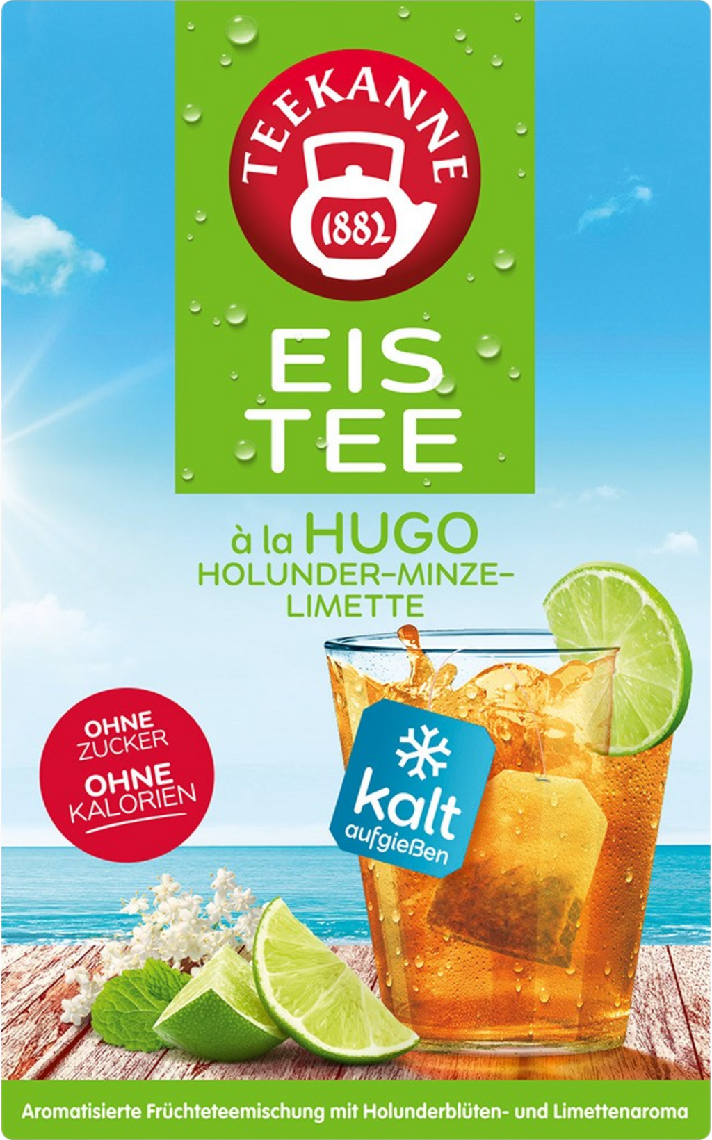 Jäätee Hugo on täydellinen janonsammuttaja kuumiin kesäpäiviin. Tämä hedelmätee-sekoitus seljankukan ja limen aromeilla on suunniteltu erityisesti kylmällä vedellä valmistettavaksi. Täysin kaloriton ja sokeriton, vain nautittavaksi.