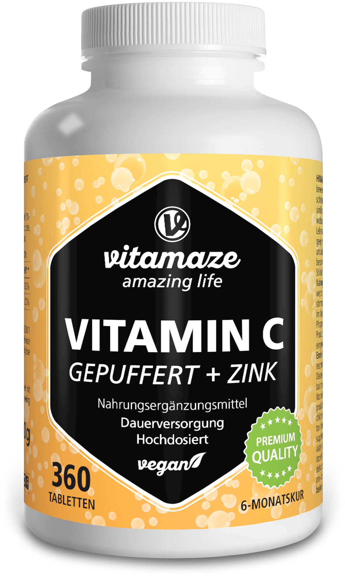 Tässä valmisteessa C-vitamiini on kalsiumaskorbaatin puskuroituna yhdistetty hivenaine sinkin kanssa. Korkea biosaatavuus ja se, että tarpeettomia lisäaineita, kuten magnesiumstearaattia ja väriaineita, on vältetty, takaavat Vitamaze-laadun. Täysin vegaaninen ja allergeeniton.