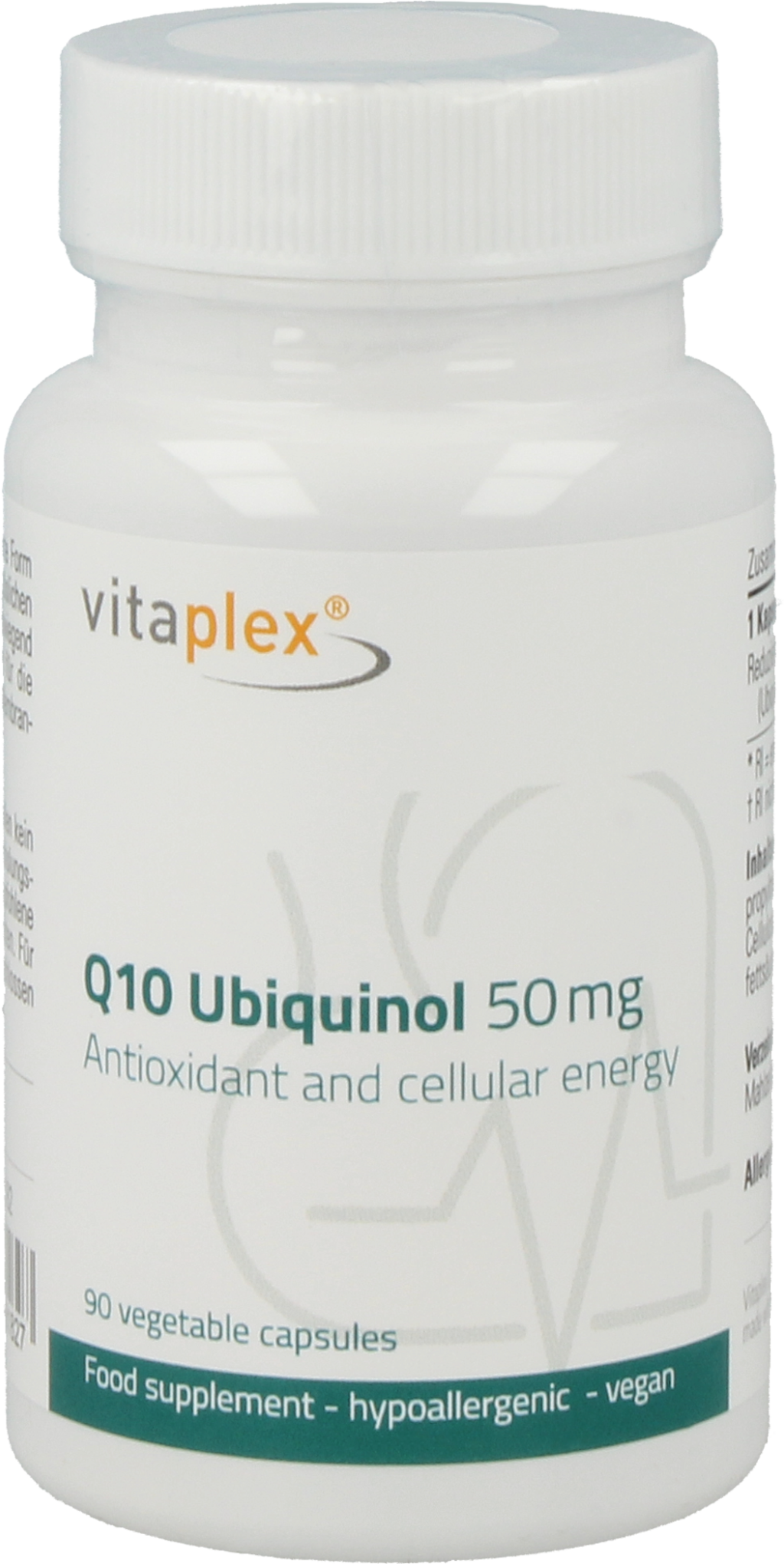 Vitaplexin Q10 Ubikinoli -kapselit sisältävät 50 mg Kaneka QH™ -ubikinolia jokaisessa kapselissa stabiloidussa pulverimuodossa. Valmiste on vegaaninen ja gluteeniton. Myös kapselin kuori on täysin kasviperäinen.