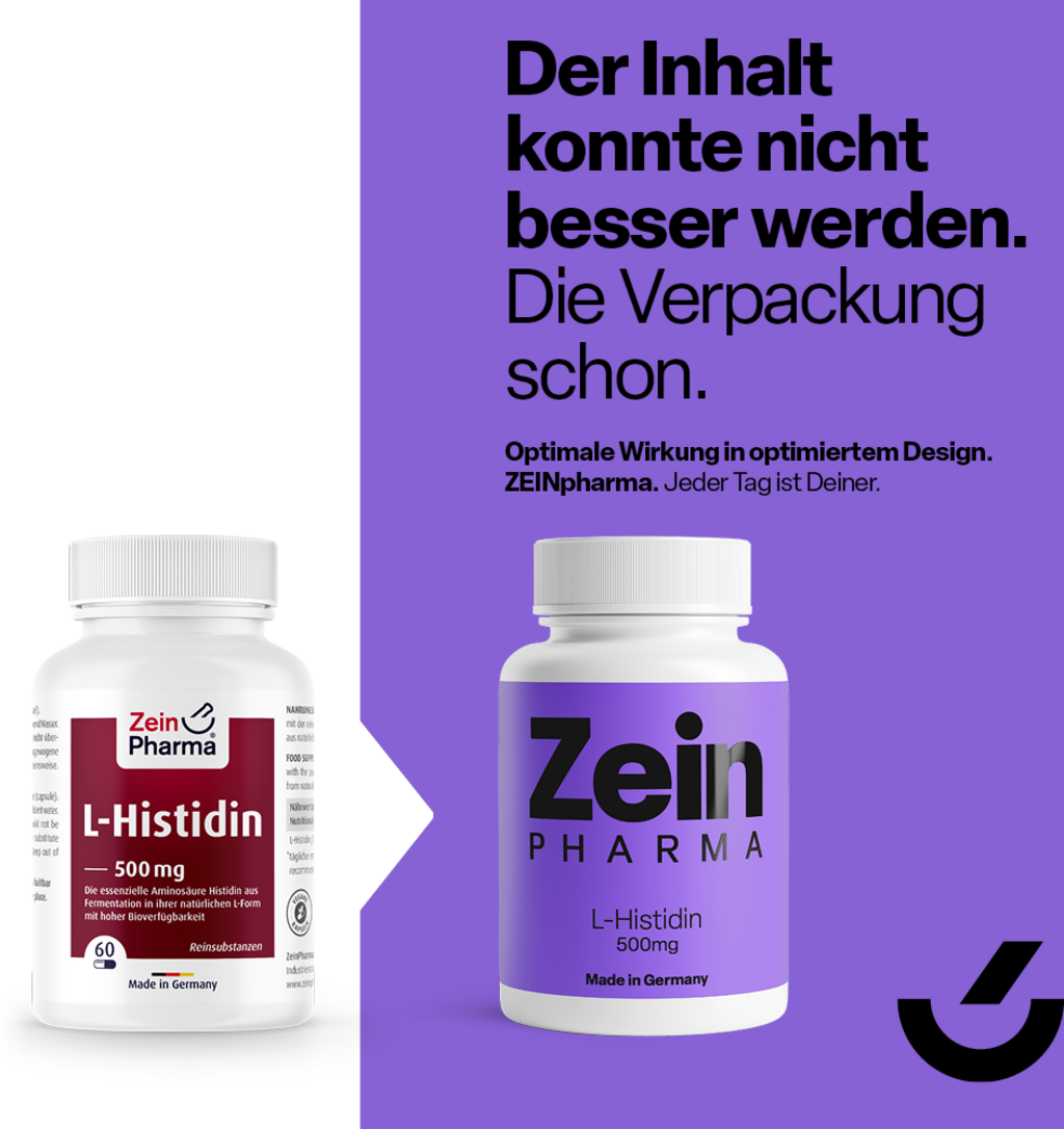 L-Histidiini kuuluu välttämättömiin aminohappoihin ja toimii proteiinien rakennusmateriaalina. Se on myös L-Karnosinin ja histamiinin edeltäjä. ZeinPharman vegaaniset kapselit sisältävät korkealaatuista L-Histidiiniä helposti imeytyvässä muodossa. Koostumus ei sisällä tarpeettomia lisäaineita, kuten magnesiumstearaattia tai keinotekoisia väriaineita.